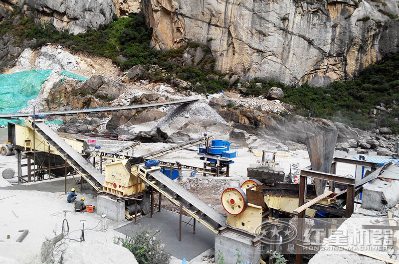 產線配置:ZSW490×110振動給料機、PE750×1060鄂破、HXGYS400圓錐破、HXVSI1140制砂機、2YK2460振動篩、3YK2460振動篩、輸送機若干